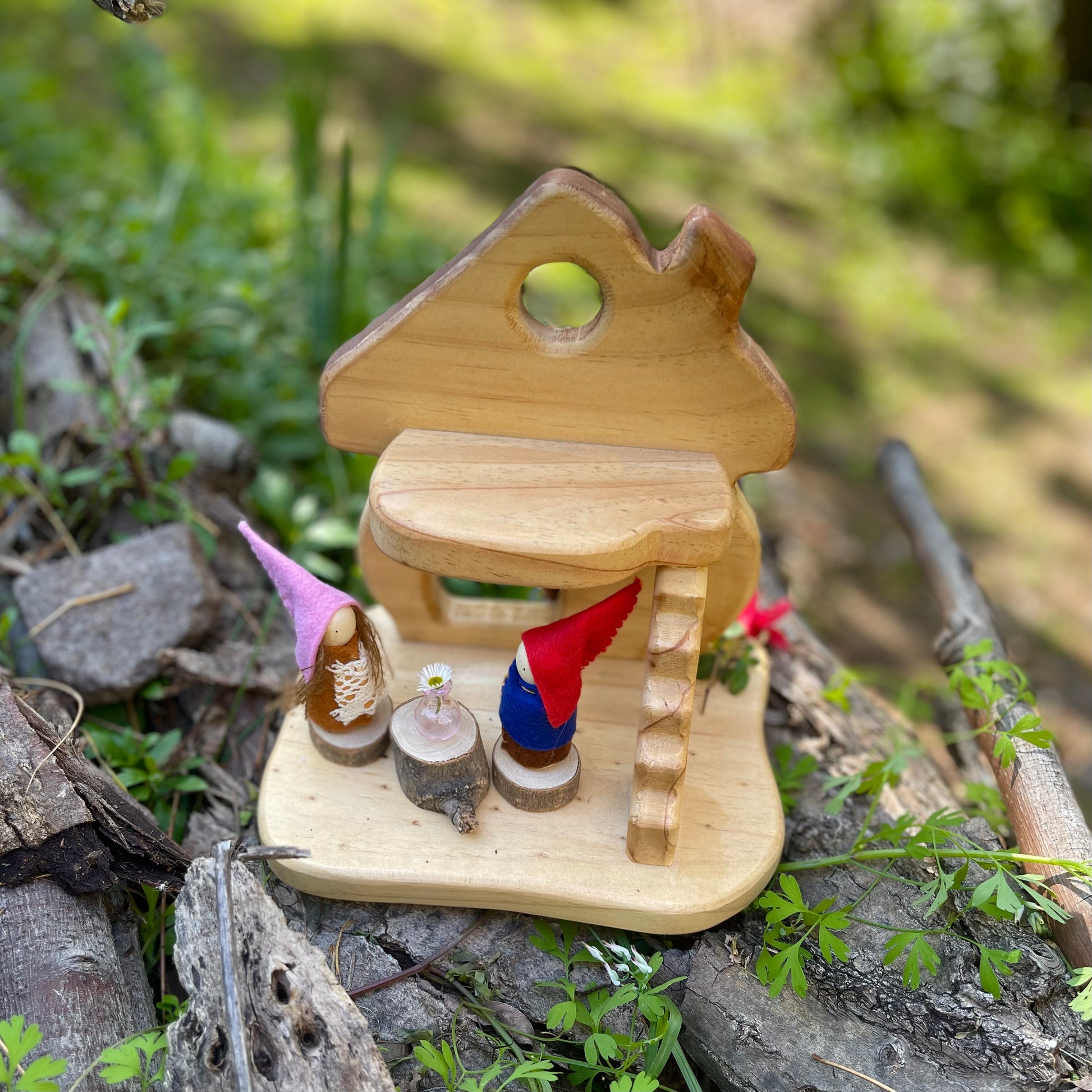 - Casa Gnomo con Gnomos (Incluye Casa de madera, mesita tronco y dos gnomos de madera y pañolenci.