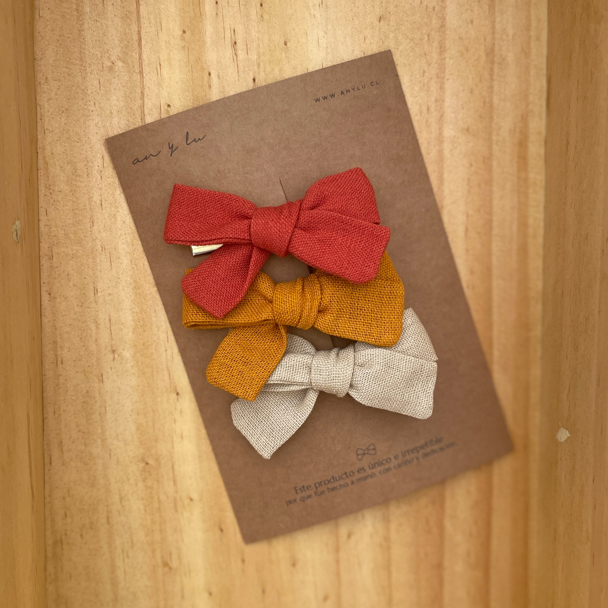 3 pinches de lino hecho a mano.