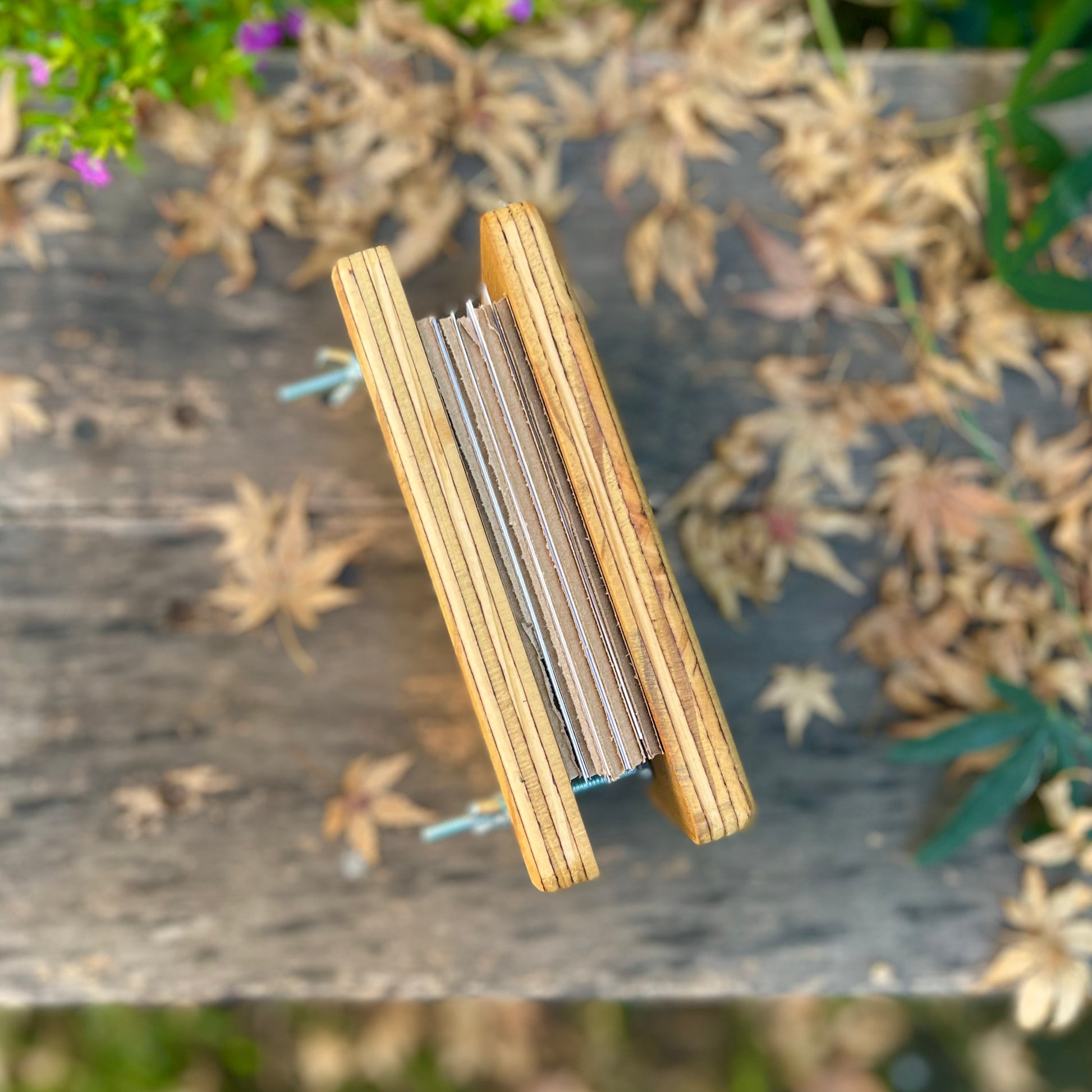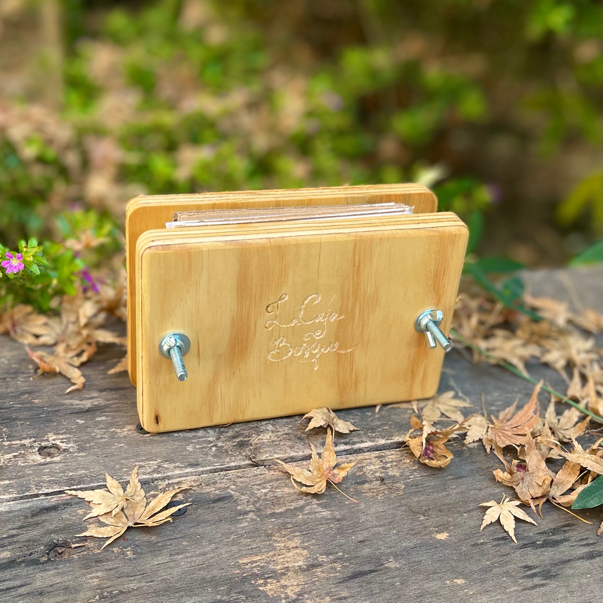 Prensa de madera sellada con ceras y tintes vegetales Alemanes. Ideal para llevarla contigo y recolectar bellas flores y hojas, ponerlas en la prensa... esperar... y disfrutar del proceso y tesoros que aparecerán.
