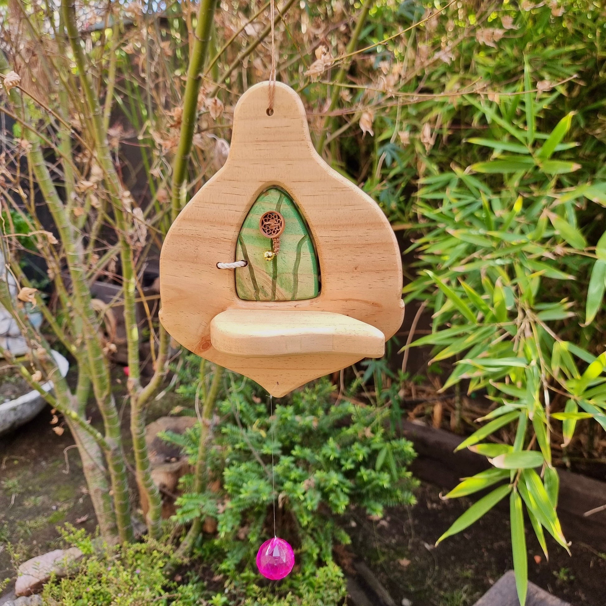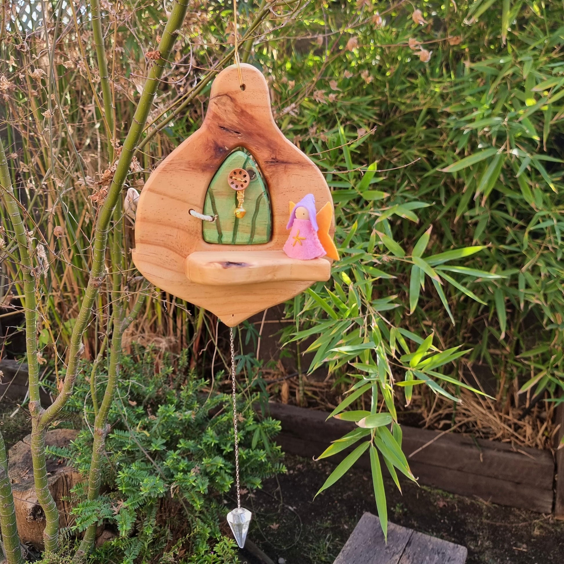 Portal Hada colgante, incluye hilo para colgarlo en algún lugar exterior (Ubicarlo a la sombra y evitar el contacto con el agua, para mayor durabilidad) o al interior.