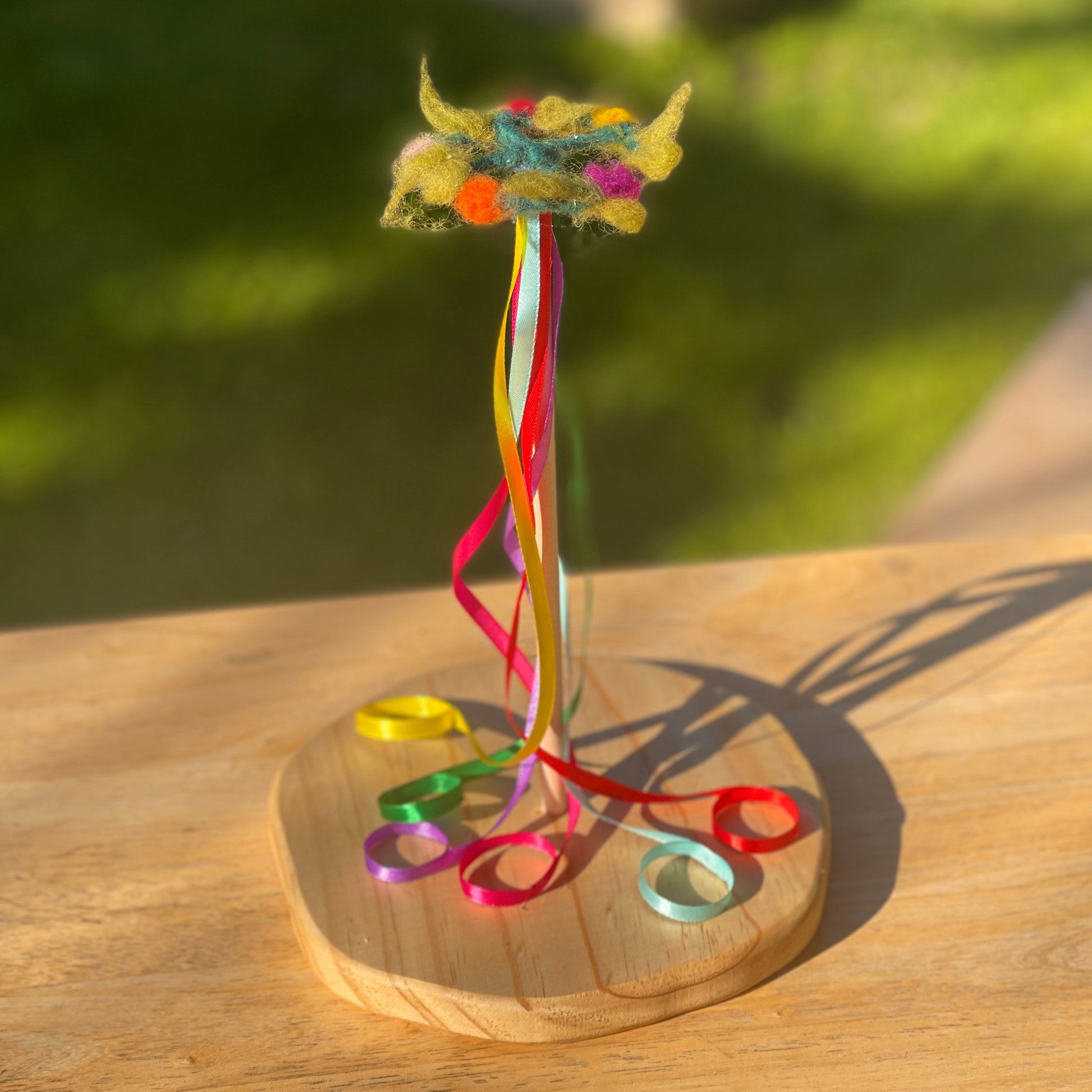 - Una varita central (desmontable) con una corona de vellón de enredadera y 6 cintas de colores